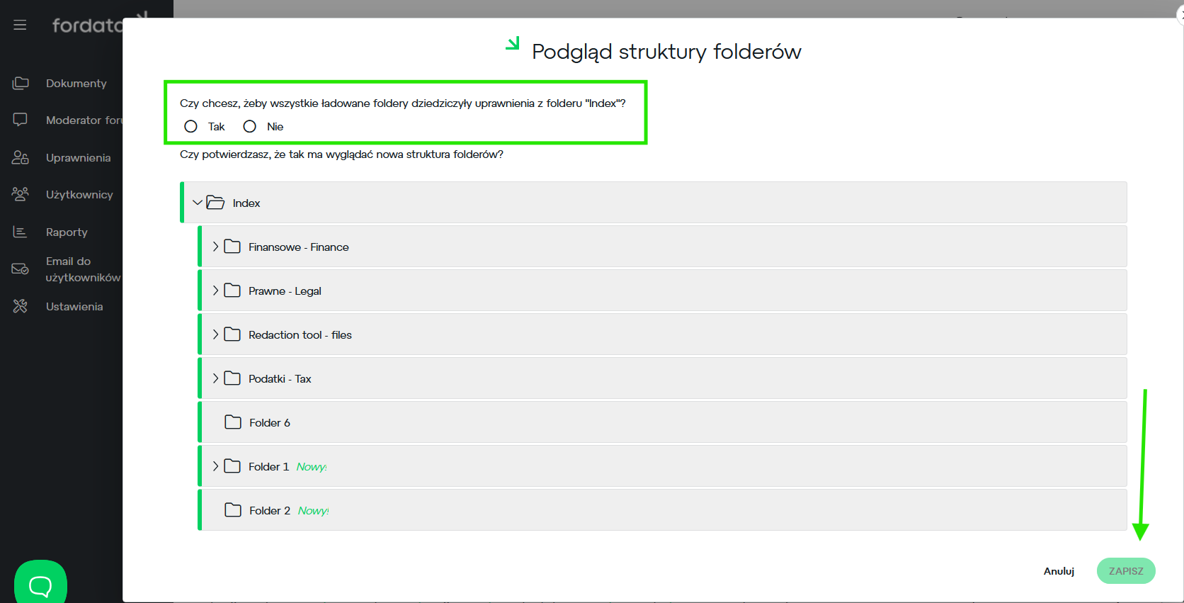 ZAŁADUJ FOLDER —> Załaduj cały folder wraz z dokumentami do wnętrza wybranego katalogu.