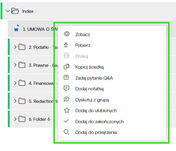 Oprócz możliwości przeglądania dokumentów, masz także dostęp do przydatnych narzędzi, dzięki którym znacznie usprawnisz poruszanie się w strukturze. Kliknij na plik prawym przyciskiem myszy, żeby rozwinąć listę dostępnych opcji (rys. 1).